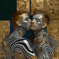 Welkom in de betoverende wereld van mijn AI-gecreëerde kleurrijke en sierlijke decoratieve portretten, waarin goud schittert als het stralende middelpunt en de onvergankelijke pracht van Gustav Klimt herleeft.