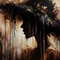 Verlies jezelf in de betoverende schaduwspeling van een vrouw met een hoed, vastgelegd in weelderige bruin- en goudtinten. Dit abstracte moderne werk, met zijn subtiele contrasten, roept een aura van mysterie en verfijning op. Laat je meevoeren door de warme, luxueuze sfeer die dit werk uitstraalt en voeg een vleugje tijdloze elegantie…