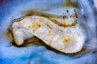 Roestige schoonheid in blauw - golf en sporen van roest op plaatstaal abstractie