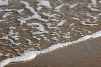 Een golf komt zachtjes aan land in Zeeuws-Vlaanderen in het ochtendlicht