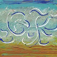 Abstract schilderij van golven in de zee en een stukje strandzand.