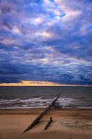 Een golfbreker aan de kust vanuit de duinen van Cadzand. Recht de zee in.