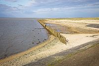 Gouden licht op de golfbreker bij laag water in het Friese Moddergat.