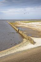Gouden licht op de golfbreker bij laag water in het Friese Moddergat.