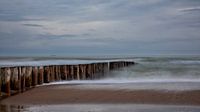 Lange sluiter tijd foto van een golfbreker op het strand en in zee