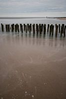 Golfbreker op het strand van Zoutelande (provincie Zeeland in Nederland), met in de verte de volgende golfbrekers.
