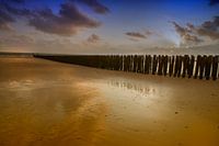 Golfbrekers Zoutelande Zeeland tijdens zonsondergang