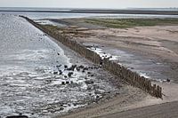 Avondstemming aan de Waddenzee bij het dorp Moddergat in Friesland (Nederland).
