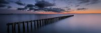 Panoramafoto van de golfbrekers in Hindeloopen tijdens zonsondergang.