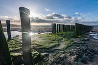 Golfbrekers op het strand van Zoutelande, ik heb het zo gefografeerd dat de zon net langs de paal gaat en nog een zon die via reflexie op het water weerkaats, door een kleiner diafragma te kiezen krijg een stervormig zon. zo heb ik net iets ander beeld gekregen als standaard.