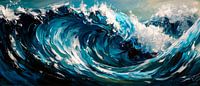 De onstuimige kracht van de oceaan ontvouwt zich in sterke, glinsterende blauwtinten en dynamische golfbewegingen die letterlijk tot leven komen. Een fascinerend spel van licht en schaduw betovert de kijker. Ideaal voor de woonkamer of werkruimte, het brengt een verfrissende, ontspannen sfeer in elke kamer.