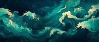 Glinsterende golven van diepblauw en zacht goud geven het decor een mystieke diepte en dynamiek. De gebogen lijnen doen denken aan een rustgevende waterpartij die harmonie en elegantie uitstraalt. Dit kunstwerk past perfect in de woonkamer, waar het gesprekken stimuleert en een ontspannen sfeer creëert.