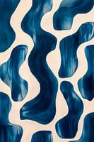 In diepe blauw- en wittinten vloeien organische vormen harmonieus over het doek, waardoor een rustgevende, waterige sfeer ontstaat. Dit opvallende kunstwerk voegt een modern tintje toe aan elke kamer en is perfect voor de woonkamer, waar het kan dienen als een stijlvol middelpunt en visuele oase van rust.