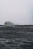Een grote golf op een stormachtige ochtend in Scheveningen, Den Haag.