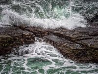 Een rotsachtige kust ontmoet de oceaan bij Kilkilloge, County Sligo, Ierland.