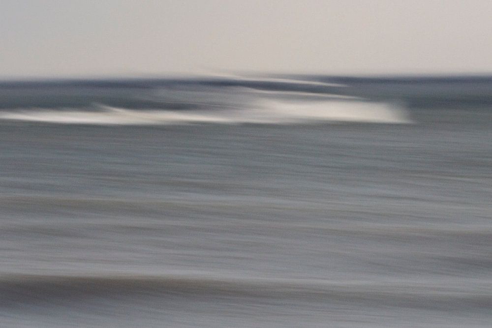 Golven gefotografeerd met lange sluitertijden. Geen scherpe lijnen maar bewogen golven met zonglinstering...