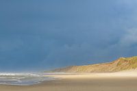 Golven op het strand van het eiland Texel in het Waddenzeegebied in het noorden van Nederland tijdens een stormachtige herfstmiddag aan de Noordzeekust van het eiland.