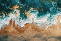 Een beel van de zee, van golven met een gouden randje op het strand.