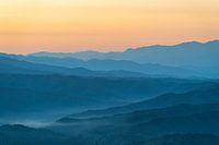 Voor dat de zon opkomt ontstaat er een gouden gloed over het gebergte.