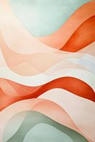 Zachte golven van delicate terracotta en pastelkleuren dansen harmonieus over het oppervlak en geven de kamer een rustgevende sfeer. Deze abstracte compositie straalt warmte en elegantie uit, ideaal voor een woonkamer waar het aanzet tot gesprekken en een uitnodigende sfeer creëert. Een waar feest voor de zintuigen!