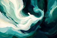 Zachte golven van diepgroen en levendig wit dansen harmonieus samen en creëren een gevoel van rust en beweging. Deze vloeiende vormen nodigen uit om te dromen en geven elke kamer een elegant tintje. Ideaal voor de slaapkamer, waar ze een ontspannen sfeer creëren en innerlijke harmonie bevorderen.