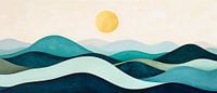 Zachte golven in rustgevende groentinten nodigen je uit voor een dromerige reis, terwijl een gouden zon aan de horizon schijnt en warmte belooft. Deze harmonieuze compositie creëert een ontspannen sfeer in een slaapkamer, ideaal voor rustige nachten en vredige ochtenden. Een perfect stuk dat de kamer verandert in een oase van rust.