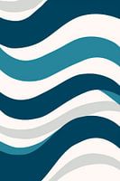 Zachte golven dansen in verschillende tinten blauw, terwijl er een rustig, bijna meditatief ritme ontstaat. De harmonieuze combinatie van lichte en donkere tinten creëert een gevoel van beweging en diepte. Een samenspel van licht en schaduw creëert visuele lichtheid, het oog glijdt over de zachte rondingen en ontvouwt de fantasie van een kalm, maritiem avontuur.