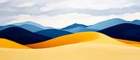 Zachte golven van warm zand en het koele, rustgevende blauw van de bergen vormen samen een harmonieus landschap. De subtiele kleurovergangen en rustige compositie nodigen uit om te dromen. Dit kunstwerk is ideaal voor in de woonkamer, waar het een ontspannen sfeer creëert en gesprekken stimuleert.
