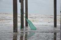 Kijken naar de golven vanuit onder de strandtent, Callantsoog, Noord-Holland
