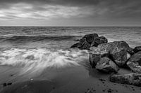 Golven van het IJsselmeer bij Urk in zwart-wit