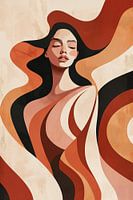 Dit digitale kunstwerk versmelt vrouwelijke schoonheid met abstracte vormen. Een sierlijk vrouwenportret wordt omgeven door vloeiende lijnen in warme aardetinten, wat beweging en transformatie suggereert. Het beeld combineert kracht en zachtheid, en nodigt uit tot reflectie over identiteit en zelfperceptie. Door figuur en abstractie naadloos te integreren, daagt het werk de kijker uit na te denken over de veranderlijke aard van het zelf. De impact ligt in het oproepen van emoties en gedachten die verder reiken dan de visuele aantrekkingskracht, wat ruimte biedt voor persoonlijke interpretatie.