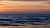 Golvende zee, vergezeld met een ondergaande zon en schilderachtige luchten