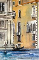Aquarel schilderij van een Venetiaanse stadsgezicht geschilderd door Ricardo Bouman.