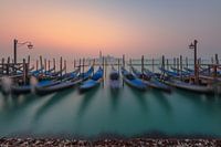 Gondels van Venetië bij zonsopgang
