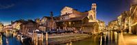 Panorama van een kleine zijstraat in Venetië in het avondlicht op het blauwe uur.