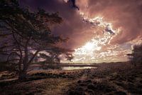 Nederlands landschap met zon en vennen, heide