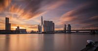 Zonsopkomst in Rotterdam met lange sluitertijd vastgelegd.