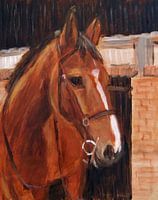 Schilderij, iets minder abstract dan Good old Boy one, van het mooiste, beste en liefste paard van een manege in Slenaken.