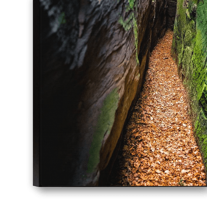 Een van de zeven kloven in het 'sept gorges' complex nabij het plaatsje Berdorf in Luxemburg. Sommige van deze kloven zijn slechts 30cm breed en je kan er alleen zijdelings doorheen. Deze was gelukkig iets breder (zo'n 50cm), maar net zo donker...