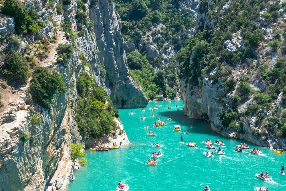 Op deze foto zie je een geweldig uitzicht op Gorges du Verdon in Frankrijk. Het blauwe water maakt deze foto prachtig. Het is een geliefde vakantiebestemming, maar ook enorm fotogeniek. Je vindt deze plek in de Provence.