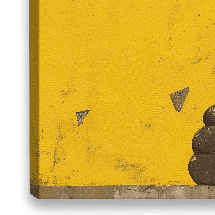 Gorilla Schilderij - Dit dierenschilderij toont een gestileerde, monumentale gorilla in verschillende grijstinten tegen een levendige, effen gele achtergrond, waarbij de expressieve ogen en het robuuste postuur van de gorilla nadrukkelijk in beeld zijn gebracht.