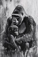 Een prachtig monochroom kunstwerk dat de tedere band tussen een gorilla en haar jong vastlegt. Dit krachtige ontwerp straalt emotie en bescherming uit en past perfect in elke ruimte waar een tijdloze en natuurlijke sfeer gewenst is. Ideaal voor liefhebbers van dieren en minimalistische kunst. Voeg dit unieke kunststuk toe aan je interieur voor een stijlvol en betekenisvol statement.