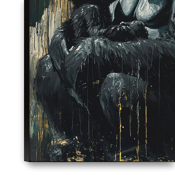 Dit prachtige ontwerp toont een ontroerend tafereel van een gorilla die liefdevol haar jong vasthoudt. De krachtige penseelstreken en het expressieve gebruik van kleuren brengen de emotie en verbinding tussen moeder en kind tot leven. Het donkere, glanzende zwart van de gorilla's vacht contrasteert met de warme tinten van de…