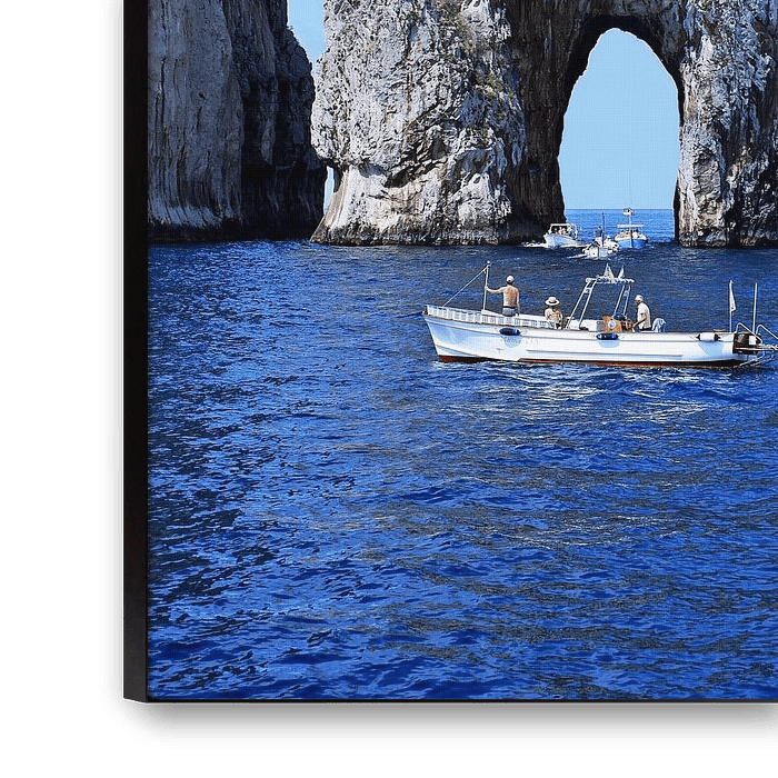 Een rotsformatie in de vorm van een gorilla rijst uit de zee, met een doorkijk door een blauwe grot. Het is een wonderschoon eiland waar ik een eigen invulling aan heb gegeven door het handmatig, digitaal te bewerken.