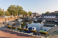 Uitzicht op vestingstad Gorinchem in Zuid-Holland tijdens het gouden uur. Gorinchem is uitgeroepen tot mooiste vestingstad van Nederland 2021.