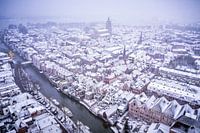 Vestingstad Gorinchem in de winter met besneeuwde daken.