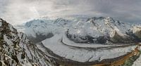 Panoramafoto van Gornergletscher op Gornergrat bij Zermatt in Wallis, Zwitserland.