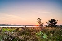 Morgenstond heeft goud in de mond. Deze foto is 's morgens vroeg op de Gortelse heide, tussen Vierhouten en Emst, nabij Gortel gemaakt. De mist in de achtergrond en de zonsopkomst maakten deze foto tot een plaatje. De heide kleurt al paars.