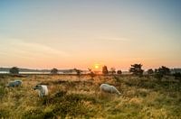 Deze foto is gemaakt op de Gortelse heide, tussen Vierhouten en Emst nabij Gortel. Deze schapen vormden met de mist en de zonsopkomst een schitterende decor. De heide kleurde al prachtig paars.