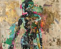 Goud 15.673 - Goud minimalistisch schilderij. Graffiti stijl.